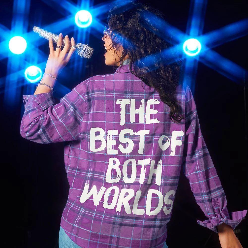 You’ll live the best of both worlds in this collared, button-front plaid flannel shirt by Cakeworthy inspired by the hit Disney Channel series Hannah Montana. But be warned: the rockin’ look may give away your secret identity as a globe-trotting pop star.