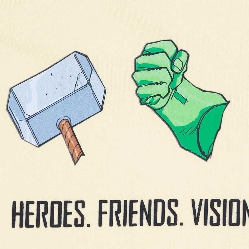 - Includes puff ink ”Heroes. Friends. Visionaries. Legends. Reassembled. Teammates. Avengers.” textΒ